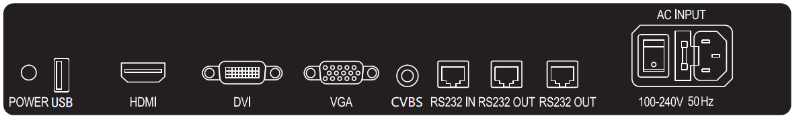 HDMI/DVI/VGA/AV/USB/RS232/ 电源接口